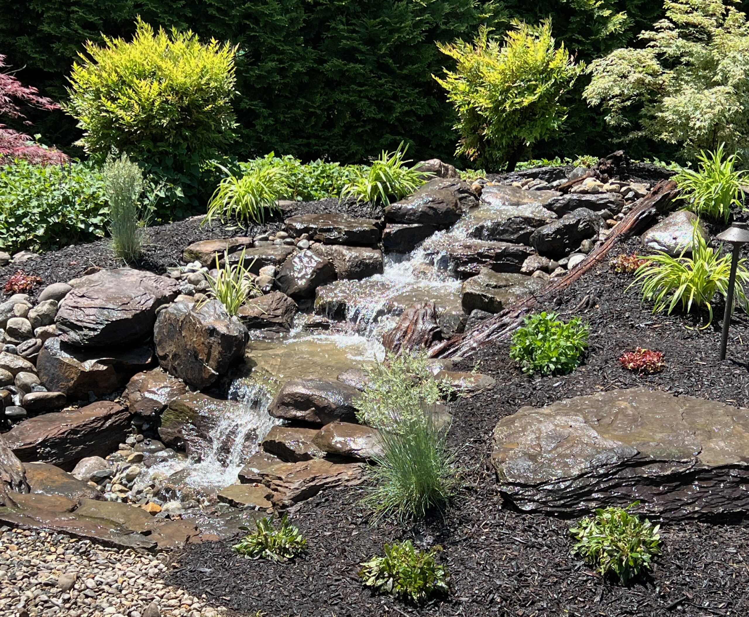 Pondless waterfalls are an ideal solution for many homeowners in our service area, offering key benefits over traditional ponds: